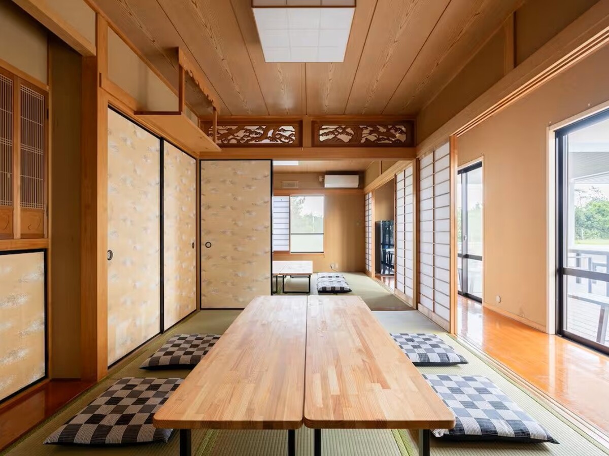 - 和室をつなげて大広間にもできる柔軟な間取り。鍋パーティーや団体向けの食事演出にも対応。