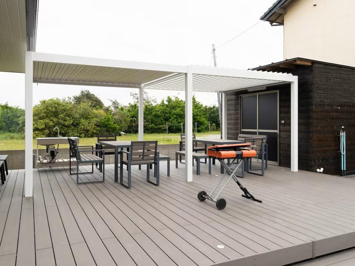 「浜の灯り家 九十九里」は、九十九里浜から徒歩2分、潮風が心地よい海辺の静けさに包まれた一棟貸しの宿。広いウッドデッキとプライベート空間が、出張シェフとの特別なひとときを演出します。